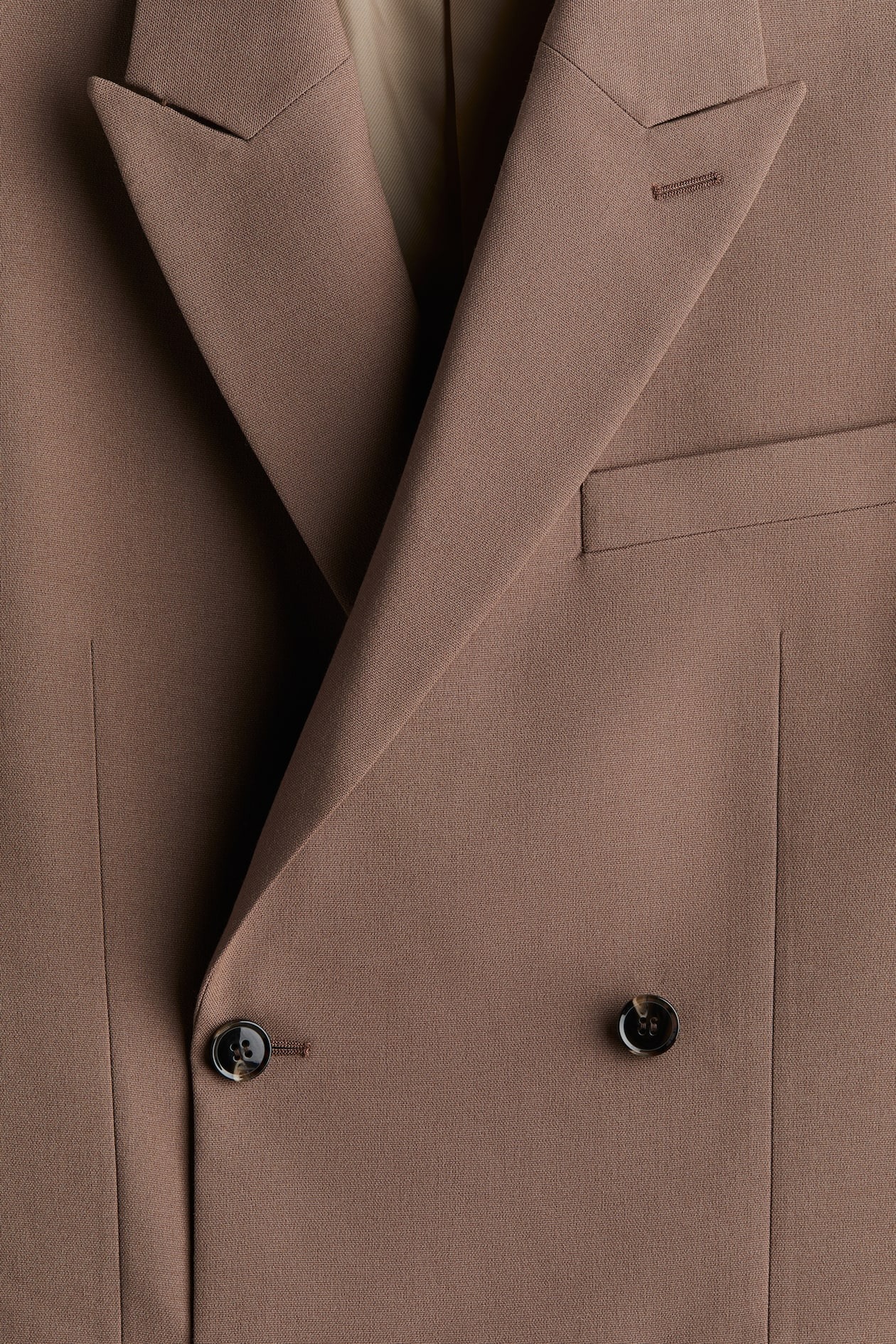 Double-breasted jacket in a soft weave with peak lapels with a decorative buttonhole, a chest pocket, jetted front pockets with a flap, and three inner pockets. Decorative buttons at the cuffs and two back vents. Loose fit for a generous but not oversized silhouette. Lined.