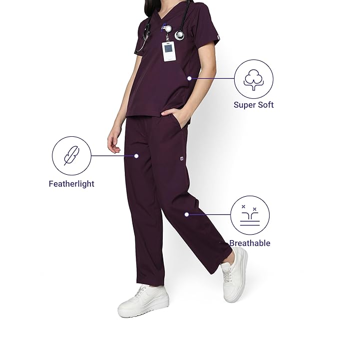 Choices: These scrubs come in colour and size options, no really! With 10+ colour options and 8 different sizes, you couldn’t ask for more! Superior Fit: The stylish V-neck in the top and the adjustable drawstrings in the bottoms make our scrubs the perfect fit for any size and body, making you feel confident.