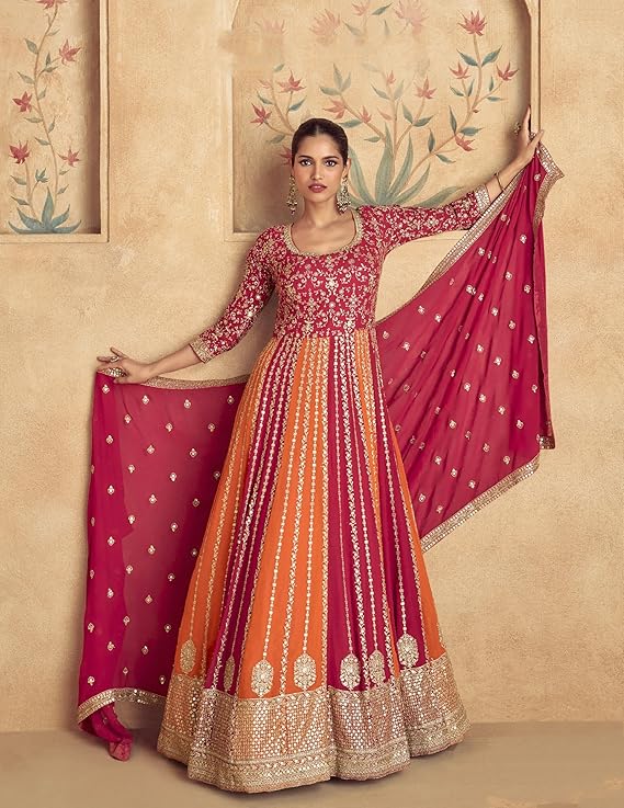Color :- Pink Top Fabric : Chinon With Santoon Inner, Dupatta Fabric : Chinon Top Length :- Full Length