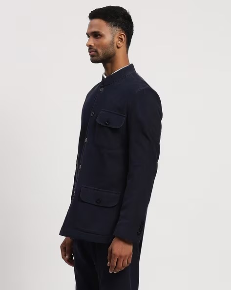 ABRAHAM & THAKORE Regular Fit Bandhgala Jacket with Flap Pockets