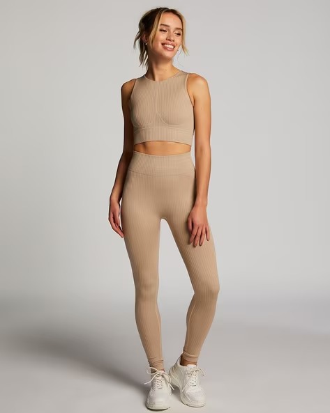This seamless sports bra is right on trend! The sports bra has removable cups and will give you sufficient support when working out in the gym. Combine with the matching leggings for a complete look!