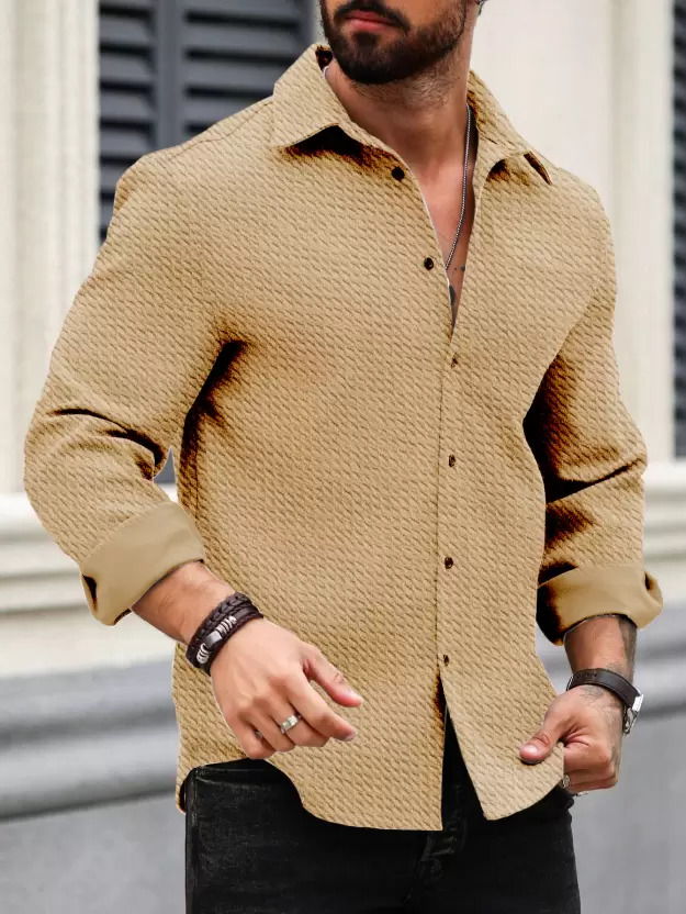 Men Regular Fit Solid Curved Collar Casual Shirt