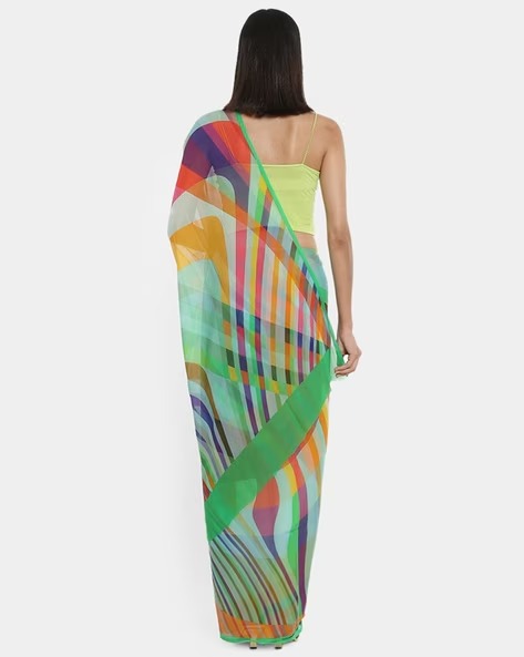 he last image gives a detailed look of the blouse piece that comes with this saree The model is wearing a blouse from our in-house wardrobe