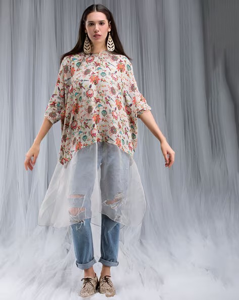Khaki Chidiya Print Kaftan Tunic
