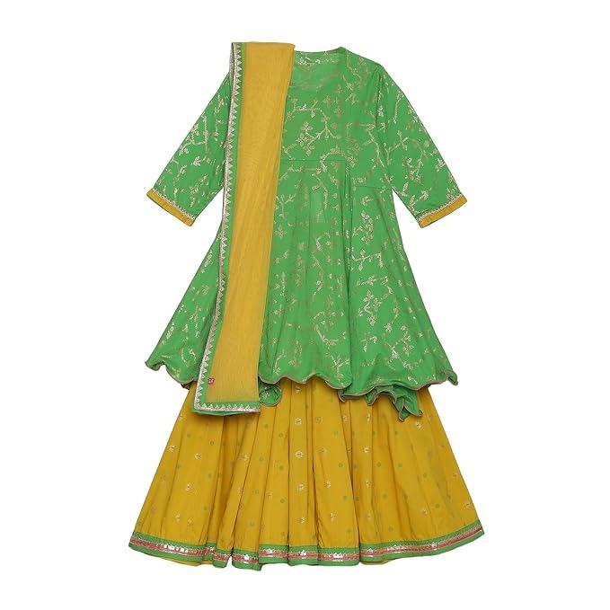 BIBA Girls Girls Readymade Cotton Printed Short Kurta Lehenga Set