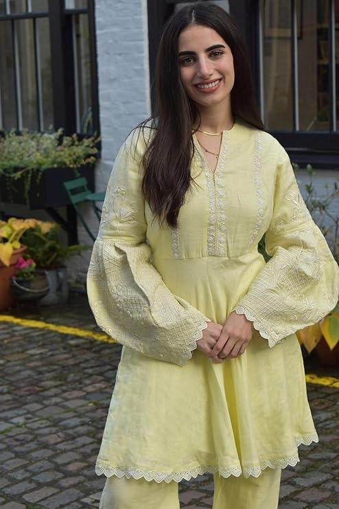 Your perfect Haldi outfit.crafted from organic cotton-bamboo fabric with intricate hand embroidery and dyed with chemical-free herbal dyes. an exclusive designer piece. Whether you're dancing at Haldi celebrations,capturing joyfulmoments, or soaking in the love, I’ll keep you feeling radiant, stylish, and super comfortable.Wear let your inner beauty shine!