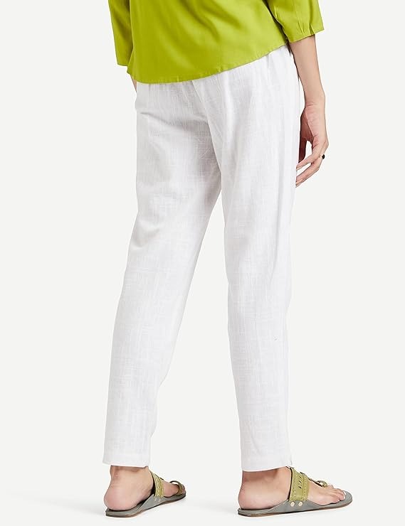 Material: Fabric: 96% Cotton Blend & 4% Lycra Style: Women's Pant, Pattern: Solid Numbers of Packet: 2, Occasion: Casual, Formal, Daily Wear etc Closure: Pull On, Length: Ankle Can be wear with top, kurti for perfect look.