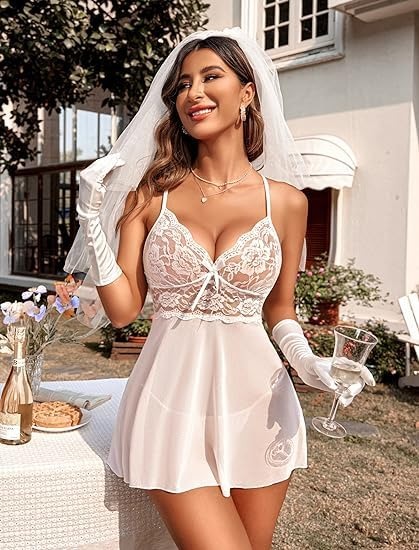 babydoll lingerie set for women. Perfect for regular SMALL, MEDIUM and LARGE sizes. Size Range : Bust ( 30 to 36 ), Waist (28 to 34 ). Lace babydoll lingerie dress featuring a breath taking deep V-neck,visible lace cup,little bow decoration in breast area. Beautiful mini length with adjustable spaghetti straps help to hold your breast more perfectly, highlights your Beautiful legs The lace chemise is a simple but very cute lingerie set. Sheer mesh and floral lace make this slutty flirtatious babydoll create tempting and illusion beauty. Feeling gorgeous when you in it and very nice to wear for fun with lover As lace lingerie for women, bridal lingerie for women, white lingerie, negligees lingerie, lace chemise, slip lingerie dress, sheer babydoll lingerie, mini babydoll sleepwear perfect for boudior shoot, wedding night, honeymoon, anniversaries,valentine's day,lingerie party and other special night Package content: 1 x women lingerie nightie + G-string. Hand washes recommended