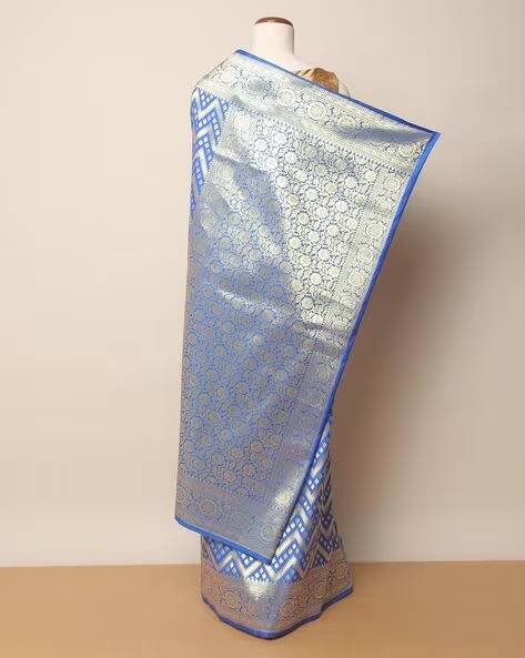 Zari is made of threads, gold or silver in color. This is woven into fabrics to make intricate patterns and elaborate designs.