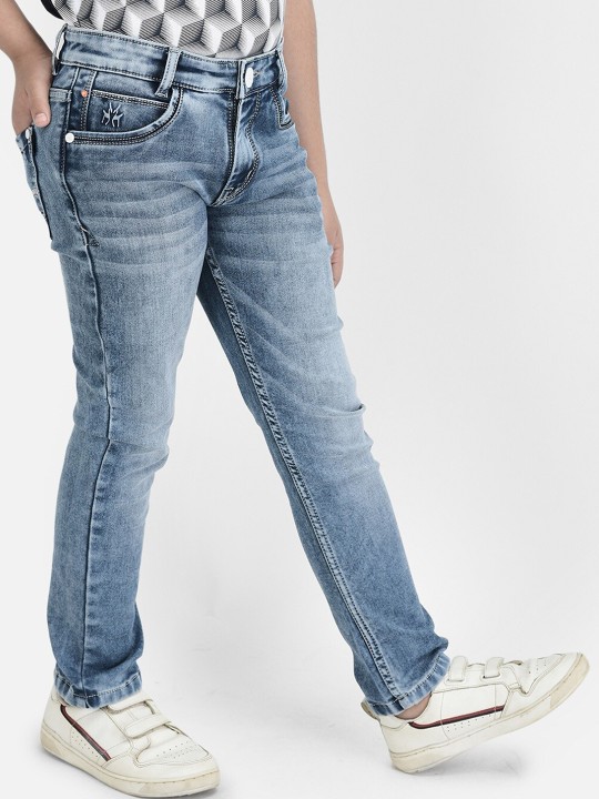 Boys Clean Look Whiskers & Chevrons Heavy Fade Slim Fit Stretchable Jeans