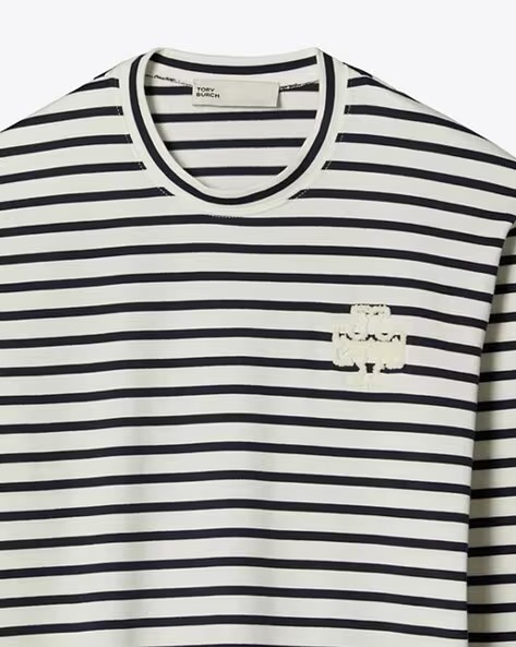 Nautical stripes and a chenille double t update a classic long-sleeve top. Crafted in soft cotton jersey.