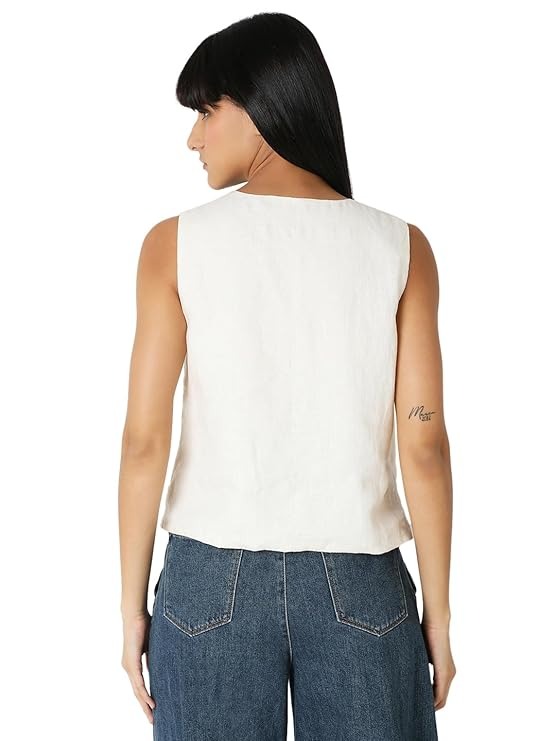 Fabric Composition,Wash Care: 100% Linen,Machine Wash Fit Type: Regular Fit Pattern Type: Solid Neck Type: V-Neck Sleeve Type: Sleeveless