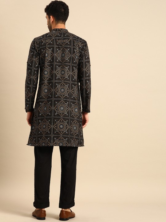Men Black Printed Regular Pure Cotton Kurta with Pyjamas