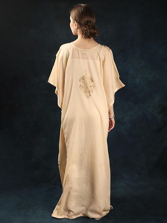 India Beige Fine Wool Long Kaftan from Srinagar