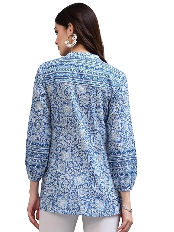 Fabric: Rayon Wash Care: Machine Wash Neck: Mandarin Collar Style: Crop Color: White & Blue