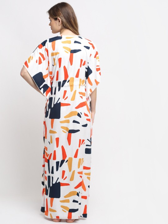 White Printed Kaftan Maxi Nightdress