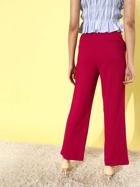 Women Stylish Pink Solid Elevated Bottom Trousers